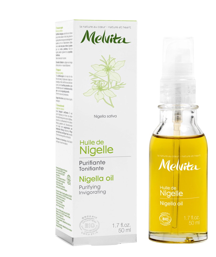 Pri Melviti predstavljajo Olje črne kumine za čiščenje in poživljanje mešane in mastne kože. 100 % organsko lepotilno olje ima namreč izjemen očiščevalni učinek, saj izboljša naravni obrambni mehanizem kože, omeji površinska vnetja in deluje kot naravni antiseptik. Ima tudi visoko vsebnost maščobnih kislin omega 6, ki pomagajo zadrževati vlago v srcu celice. To aromatično rastlino so cenili že v starem Egiptu in na arabskih dvorih, kjer so trdili, da lahko pozdravi prav vse. Cena 16,30 EUR za 50 ml.